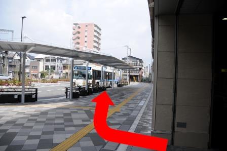 ⑥バスを降りて左を見ると。まっすぐ進みます。